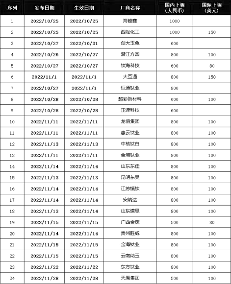 Since the fourth quarter, more than 20 titanium-white powder companies have issued a letter of titanium and white powder. The domestic price has increased by RMB 600-1000/ton, and the export price has been raised by USD 80-150 /ton. Industry insiders said that this wave of price increase letter is actually a test of tentative. The meaning of stopping the decline is even stronger, and the intention is to pull up the market, but in fact, it has not landed. The phenomenon of falling and private discounts appeared.