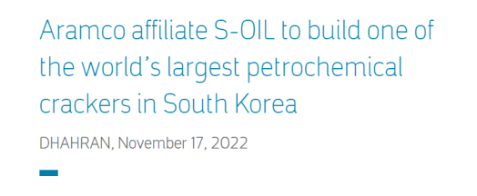 S-Oil is a refining company in South Korea, and Saudi Arabia has more than 63% of its shares to hold its company.